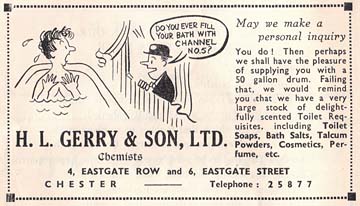 I recall as a child staying with my Grandparents in Dobs Hill. My Grandmother took me on a bus to do some provisions buying in Chester and (like your memories!) the place was a bustling hub of down to earth commerce-butchers, fishmongers and I recall there was a bread shop on the corner of Pepper St and Lower Bridge St, just opposite the Falcon where you could buy fresh tin-baked Hovis. (there's a photograph of this corner on the vanished pubs of Chester page) This place has stuck in my mind in particular because it had one of those old fashioned "Turog" signs on the top. All sadly gone for the sake of the motor car.