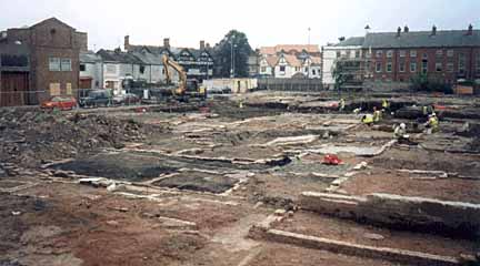 In the far distance may just be glimpsed the tall Water Tower belonging to the Chester Water Company in  Boughton, situated close to the springs that served both the Roman fortress and medieval Abbey and town. A section of lead pipe that once formed part of this advanced system was found in Foregate Street and is inscribed, "'This lead pipe was made when Vespasian and Titus were Consuls for the ninth and seventh times respectively and when Cnaeus Julius Agricola was Governor of Britain". Julius Agricola was Governor of Britain from AD 78-86. A Roman altar, "dedicated to the Nymphs and Fountains" was found close to the site of the waterworks and is now in the gardens at Eaton Hall, home of the Duke of Westminster.