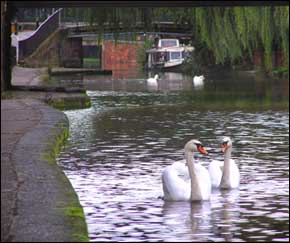 Built in the style of the industrial warehouses of the past, they have become rather a handsome addition to the canalside scene. An interesting sculpture was recently added to their gardens facing upon the canal that resembles a series of outsized tillers in memory of the working barges that long passed this way- and the pleasure craft that continue to do so today. A photograph of them may be seen on our next page...
