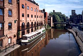The old buildings around it are due to disappear in the near future to make way for a large housing development. Here is the same location as viewed from the other direction, and also a photograph from a decade or so earlier, showing how the canal appeared from the top of the Water Tower... Here is a view taken from the St. Oswald's Way bridge on the Inner Ring Road in July 1999, showing how very much things have changed in the environment of Chester's canal over the last few decades...The Mill Hotel and its 'floating restaurant' may be seen on the left, together with its first modern extension- a further extension has recently been completed on the other side of the canal, connected to the old building by a footbridge.