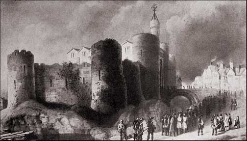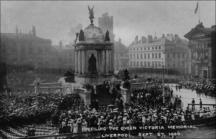 | Still with us today, the Queen Victoria Memorial in Derby Square stands on the high ground first occupied by Liverpool Castle (below) and then by St. George's Church. Go here to see how this area looked after the terrible May Blitz of 1941... |