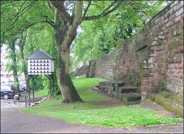 These noble birds may be often seen flying over this stretch of wall or collecting nesting materials in the trees nearby. Witnesses have spotted them swooping upon pigeons in mid-air and returning to the nest with their prize. Although once common throughout Britain, persecution during the middle ages resulted in their dramatic decline and there are now only around 7000 breeding pairs left in the country.