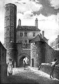 Actually, this ancient, heavily fortified entrance had been gone a century when Louise's painting was made, which features its modern replacement, an elegant archway with no defensive capabilities whatsoever, designed by Joseph Turner and erected in 1782.